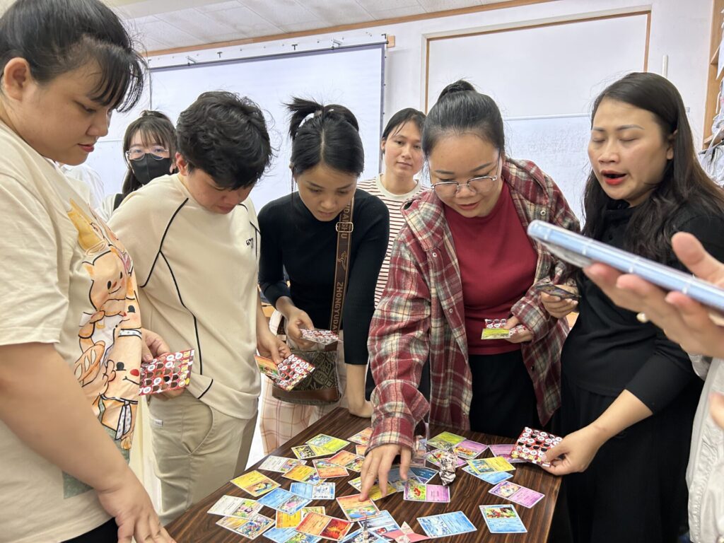 当日は、日本の文化に触れながら自然に日本語を使えるよう、「かるた」「あやとり」「ビンゴ」を実施しました。かるたやビンゴでは、遊びの中で言葉を交わす場面が多く見られ、日本語でコミュニケーションを取りながら盛り上がる良い機会となりました。あやとりでは、Adovoメンバーや外部学生が近くで手順を伝えながら一緒に挑戦し、より密に関わり合える時間になりました。